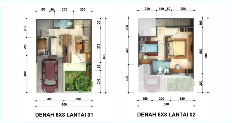 - Lantai : Rangka atap baja ringan | Penutup atap genteng beton